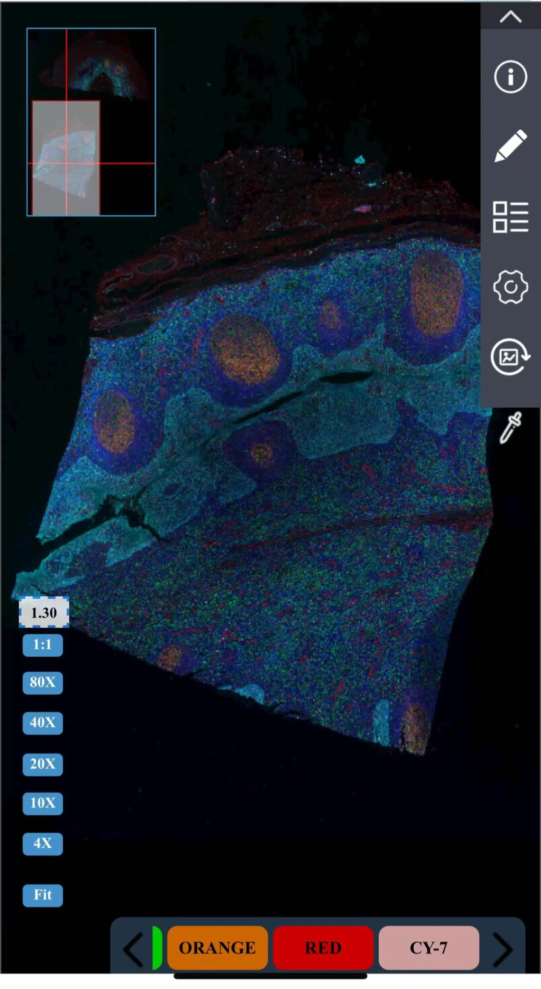 解决方案:客户在染色完成后即能在线实时预览实验结果。无需下载安装任何软件,客户只需通过电脑或移动设备即可快速查看图像,结合实时反馈机制对实验参数进行适当调整,通过媛禧生物的专业协助,客户能够快速实时查看样本,实时的沟通染色效果,确保实验数据的完整性和可靠性。